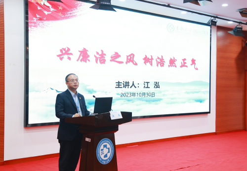 医院党委副书记、院长江泓以“兴廉洁之风 树浩然正气”为题进行授课。他从国家层面的战略部署出发,结合卫生健康行业的相关情况和2023年医德医风问题以及医药领域腐败问题集中整治工作要求,提出要正确认识当前的形势,吸取违纪违法警示案例教训,树立廉洁与廉洁从业模范,继承和发扬优良作风,做到严以修身,严以用权,严以律己,谋事要实,创业要实,做人要实。