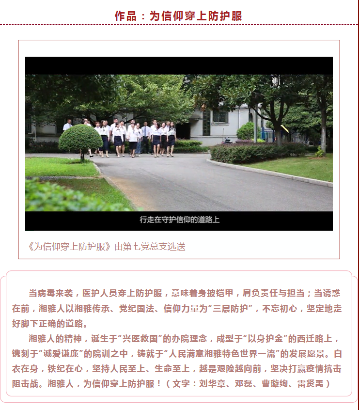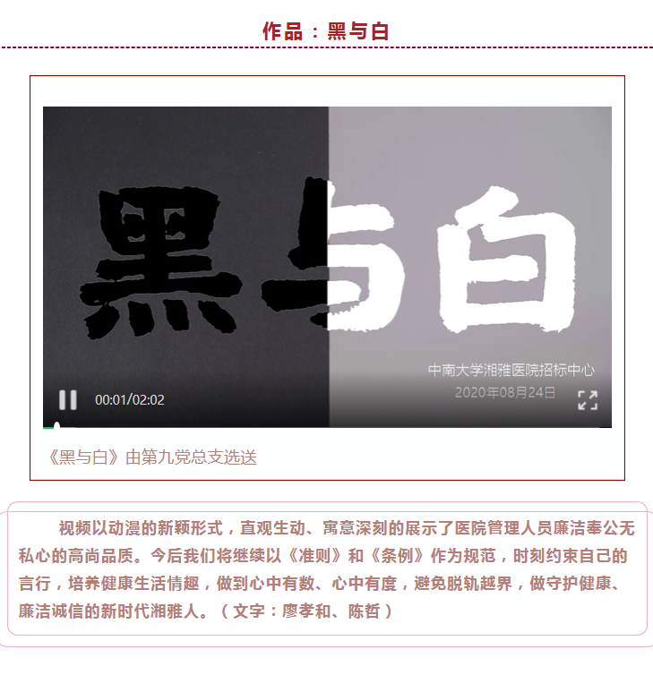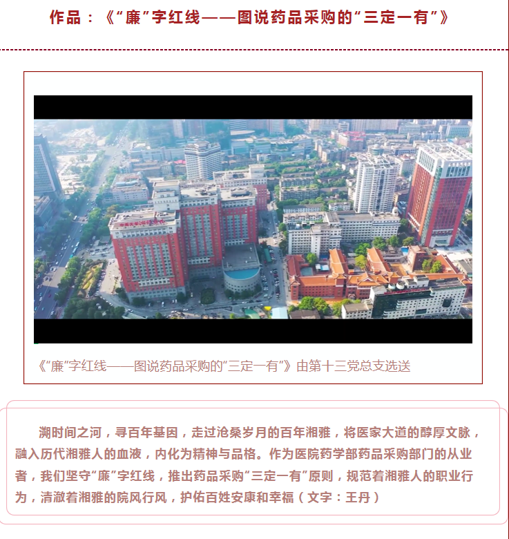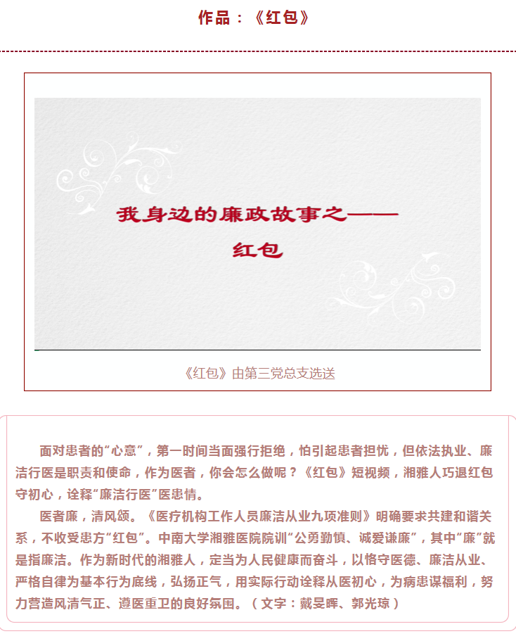 医院文化建设年:廉洁湘雅,守护初心,我身边的廉洁故事微视频作品展播